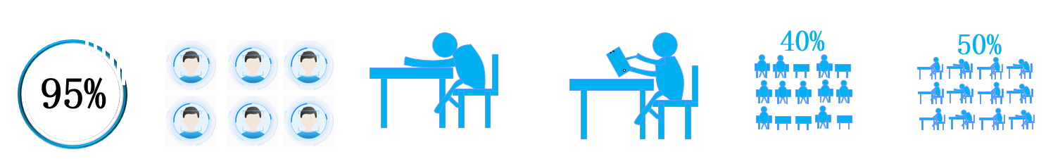 可根據預設的前排座位數自動統計前排就坐人數,并計算前排就座率,同時根據人數總量和座位數計算教室內整體就坐分布:靠前、靠后。