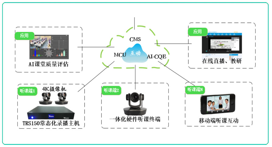 人工智能-課堂質量評估系統(AI-CQE),適用于普教、高校以及各類培訓機構,通過大數據采集與分析,將人工智能技術應用到各類教學和培訓場景中,人工智能技術和錄播系統的完美融合將有效加速教育信息化的前進步伐。...